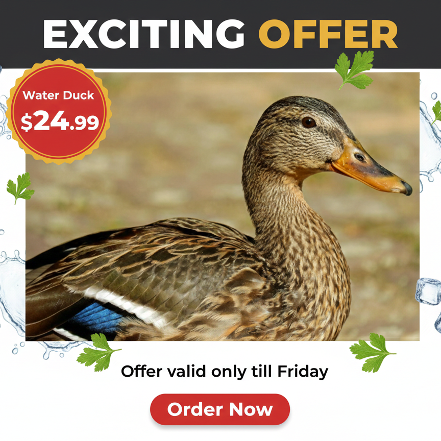 Experience the difference with our pasture-raised Water Duck, raised naturally and processed with care. Each bird is hand-slaughtered only after receiving your order, then expertly plucked, cleaned, and cut to ensure maximum freshness and quality.